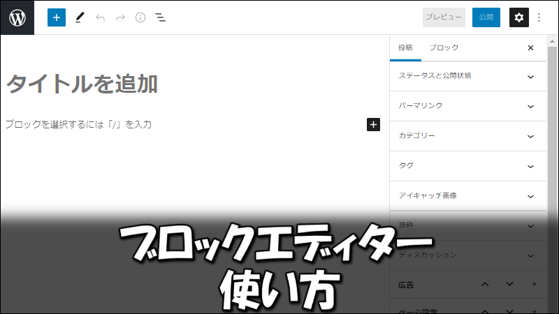 このようなGutenbergエディターの投稿画面になります。
