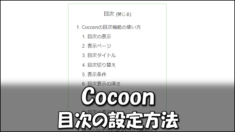 Cocoonの『目次設定』では「目次の表示/非表示」のほかに、「どのように表示させるか?」も設定可能です。
