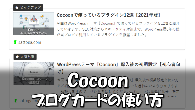 Cocoonでは記事内にURLをそのまま入力するだけで、リンクをこのようにおしゃれなカードタイプにして表示させることができます。