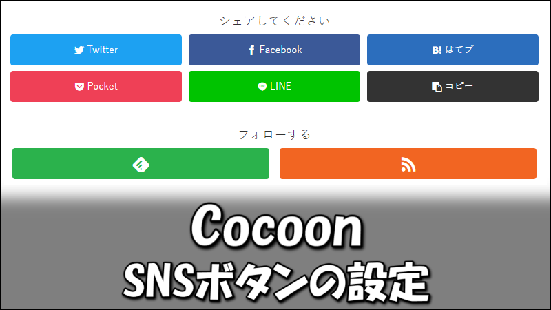 Cocoonの『SNSフォロー設定』では、各SNSに加えて、FeedlyとRSSのボタンも設置できます。