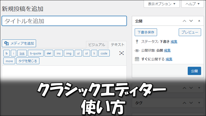 このような旧エディター(クラシックエディター)の投稿画面になります。