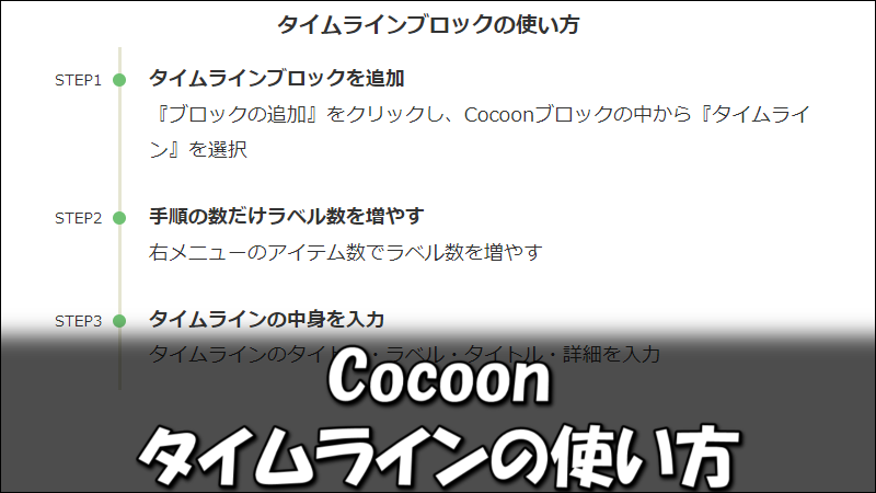 Cocoonには何かの手順などをステップ形式で伝える『タイムライン』という機能があります。