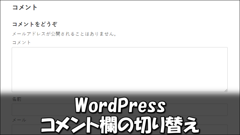ただし、テーマ特有のコメント機能がある場合もありますので、表示/非表示の切り替えは、利用しているテーマのマニュアルも確認してみてください。